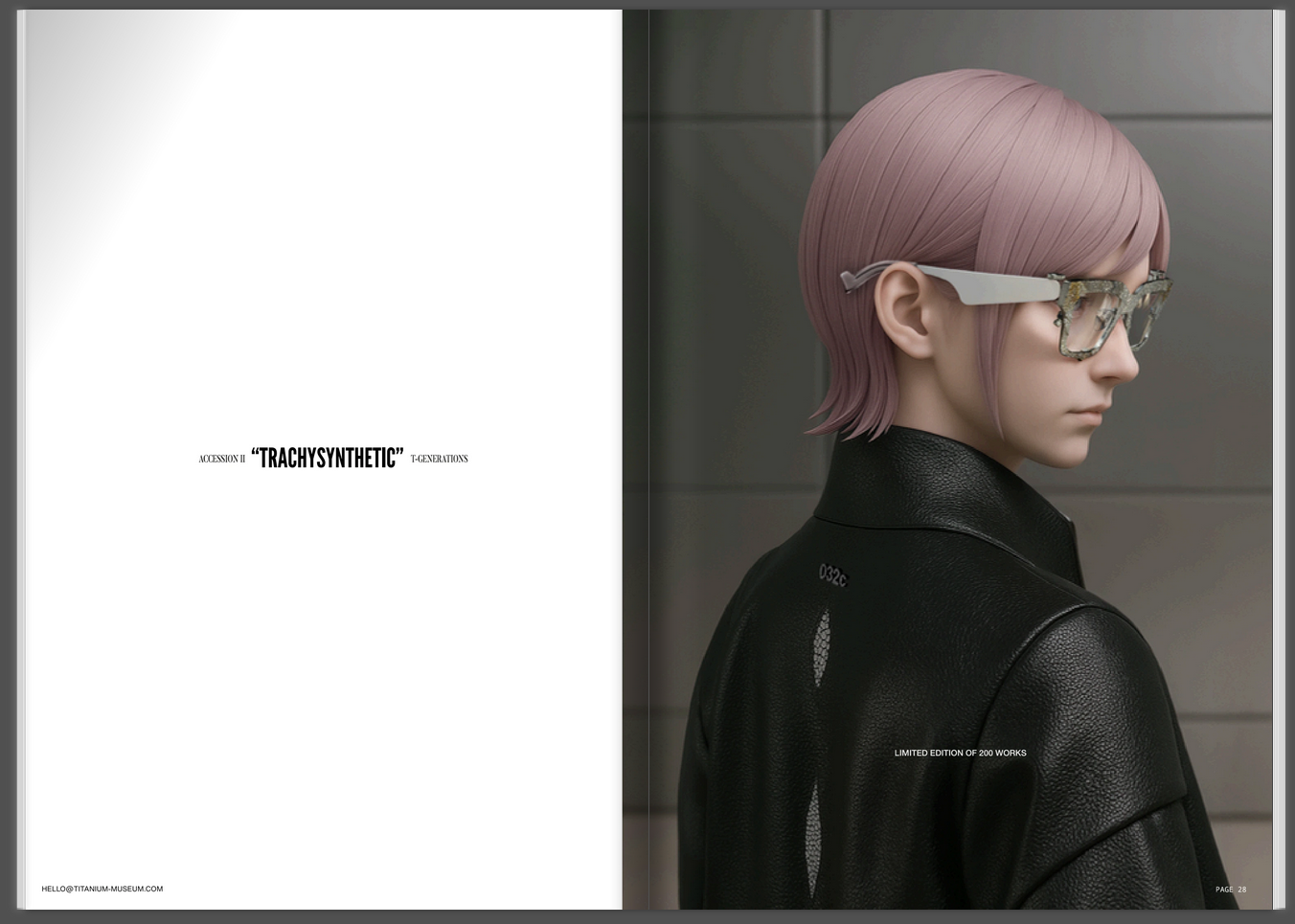For Accessions I~III, I presented Curator Avatars as otherworldly META-HUMANS. The avatar archetypes CGI figures built from CGI, using a LITTLE AI and A LOT OF Photoshop compositing techniques TO CREATE waxy SKINNED, unsettling, not entirely human MODELS. THE IDEA TO MAKE YOU PAUSE. The visual language draws from clean, clinical Japanese AND KOREAN graphic design, 80’s Comme des Garçons, or 2010’s Unix game engine graphics for Final Fantasy. White space sitS alongside grungy STYLING…a NOD TO THE PRODUCT DESIGN CONCEPT STYLING: ironic or destroyed elements SET alongside THE pristine environment THE LENS.