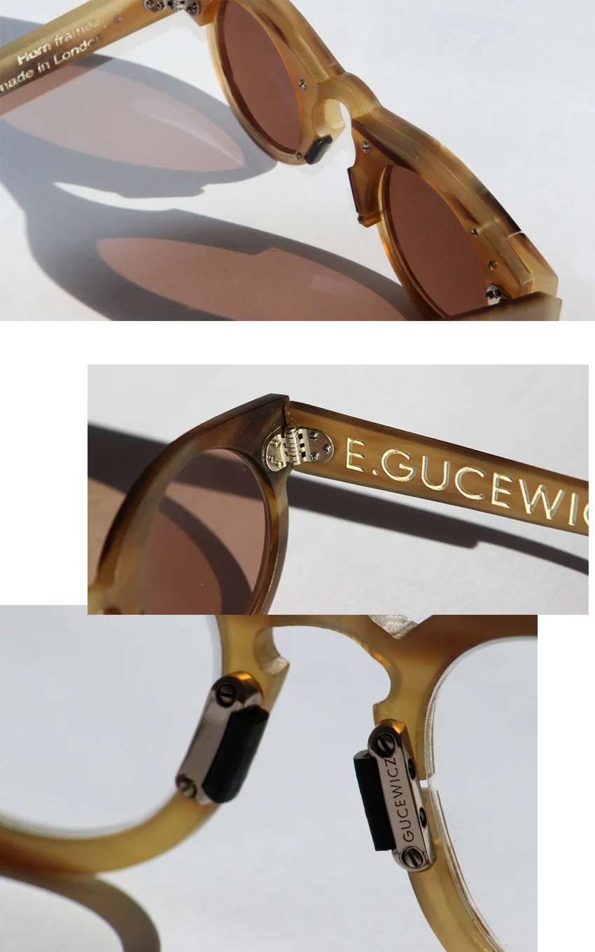 GUCEWICZ EYEWEAR, HORN, Camel bone, Mammoth tusk and steel eyewear. LONDON 2013.